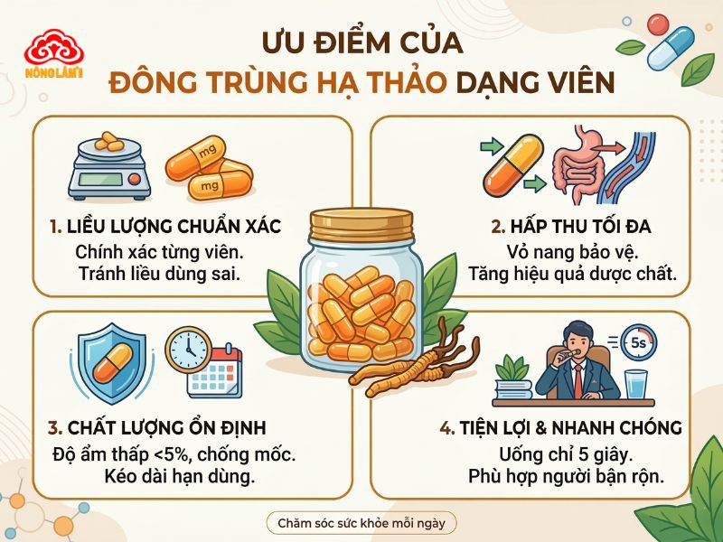 Đông trùng hạ thảo dạng viên là gì? Có ưu điểm gì?