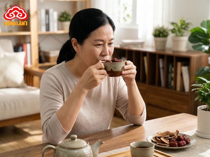 Phụ nữ sau sinh bao lâu thì uống được nước nấm lim táo đỏ?