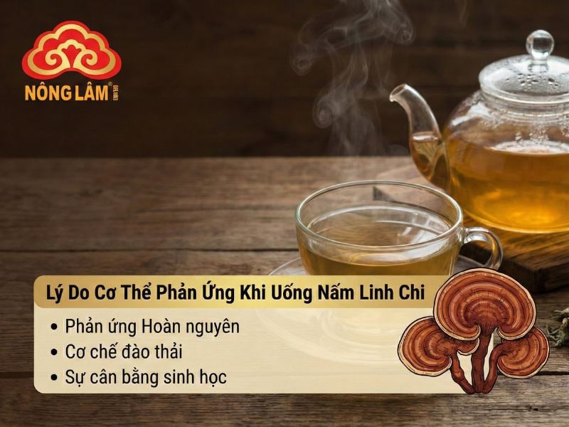 Nấm linh chi, đặc biệt là các sản phẩm từ Linh Chi Nông Lâm được kiểm soát hàm lượng dược chất, chứa hợp chất Adenosine và Germanium hữu cơ giúp tăng cường oxy trong máu và thúc đẩy chức năng gan, khiến quá trình lọc máu và bài tiết diễn ra mạnh mẽ hơn. Đây là lý do bạn có thể thấy nước tiểu sẫm màu hơn hoặc đi ngoài nhiều lần trong giai đoạn đầu.