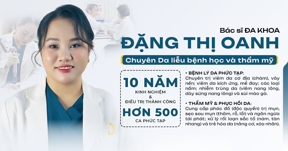 Dưới sự dẫn dắt của Bác sĩ Đặng Thị Oanh với hơn 10 năm kinh nghiệm, Dr. Choice Clinic đã điều trị thành công hàng ngàn ca bệnh lý phức tạp như vảy nến, nấm, viêm da cơ địa, mụn nội tiết và các tình trạng sẹo lồi/lõm nặng. Điểm nổi bật giúp phòng khám trở thành lựa chọn hàng đầu cho khách hàng ở xa bao gồm:
